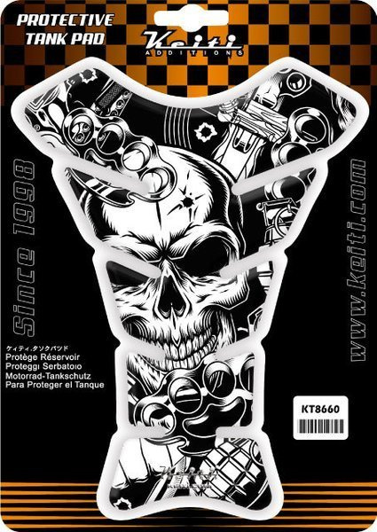 Wszystkie tankpady Keiti charakteryzują się bardzo rzetelnym wykonaniem i wysoką jakością grafiki. Dzięki nim nie tylko skutecznie zabezpieczysz zbiornik motocyklowy przed zarysowaniem ale i ozdobisz, nadając motocyklowi oryginalny wygląd. Mocny klej, nie powodujący uszkodzenia lakieru, przytrzyma tankpad nawet na najbardziej zaoblonej powierzchni zbiornika. Do każdego tankpadu załączona jest ściereczka ułatwiająca odtłuszczenie powierzchni na której ma zostać naklejony tankpad.
