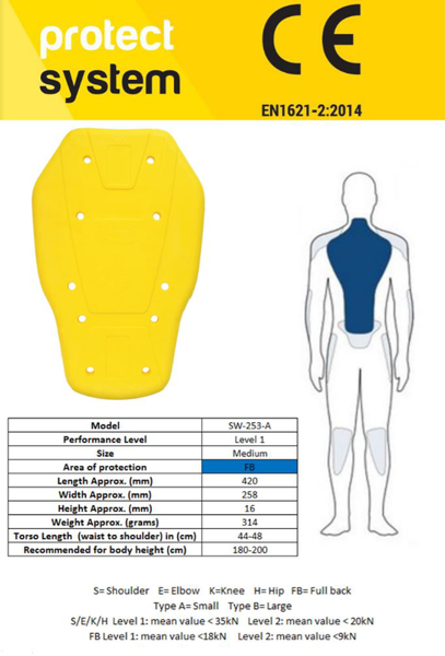 Protect System, ochraniacz pleców, SW-253-A, Yellow, M, 420mm