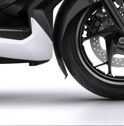 Przedłużenie przedniego błotnika zapewnia ochronę dolnej części motocykla - kolektorów układu wydechowego, owiewek i innych elementów - przed zabrudzeniami z przedniej opony.