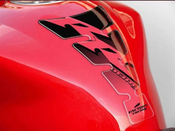 Posiada charakterystyczne logo motocykla. Skutecznie zabezpiecza lakier baku przed otarciami.