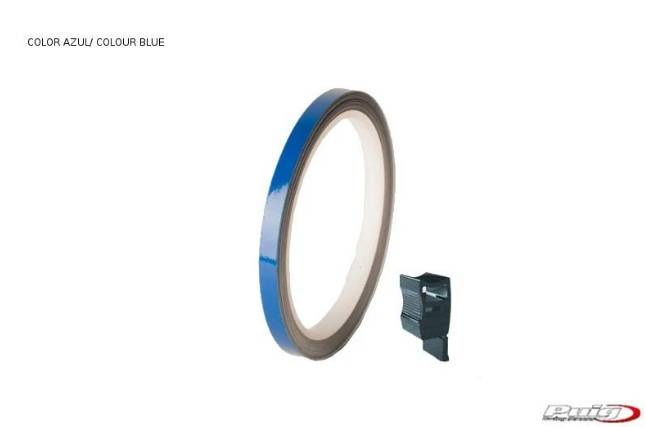 Jednolity pasek na felgi PUIG o szerokości 7 mm. W zestawie aplikator aplikator ułatwiający przyklejenie do felgi.