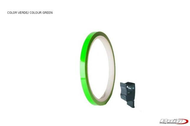 Jednolity pasek na felgi PUIG o szerokości 7 mm. W zestawie aplikator aplikator ułatwiający przyklejenie do felgi.