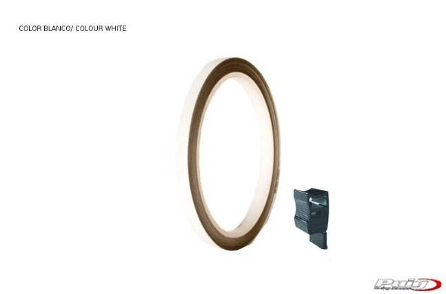Jednolity pasek na felgi PUIG o szerokości 7 mm. W zestawie aplikator aplikator ułatwiający przyklejenie do felgi.