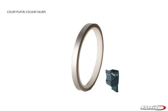 Jednolity pasek na felgi PUIG o szerokości 7 mm. W zestawie aplikator aplikator ułatwiający przyklejenie do felgi.