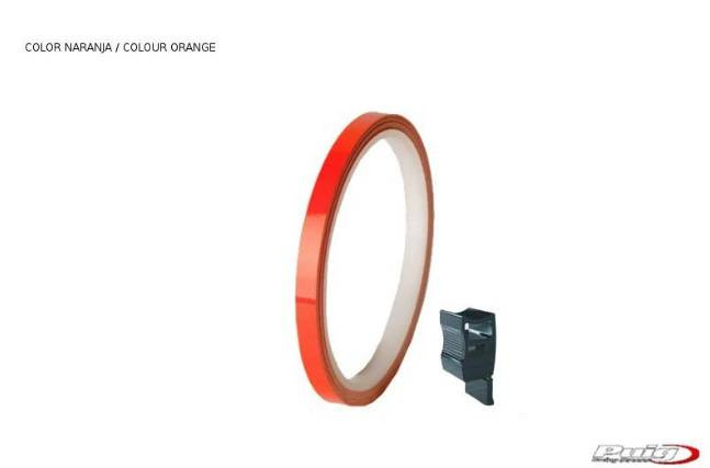 Jednolity pasek na felgi PUIG o szerokości 7 mm. W zestawie aplikator aplikator ułatwiający przyklejenie do felgi.