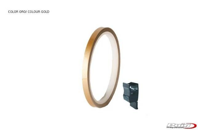 Jednolity pasek na felgi PUIG o szerokości 7 mm. W zestawie aplikator aplikator ułatwiający przyklejenie do felgi.