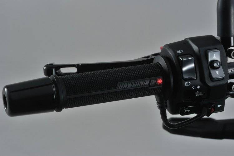 Podgrzewane manetki 4 stopniowe, otwarty koniec manetki, dopasowane do kierownic o średnicy 22.2 mm