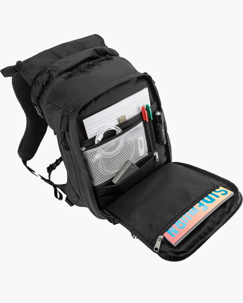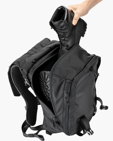 Plecak składa się z trzech części: 100% wodoodporna kieszeń na laptopa, składana komora na zamek schowana w kieszeni z organizerem oraz przestronna główna komora z mocnym zamkiem, z możliwością powiększenia od 22 do 28 litrów.
