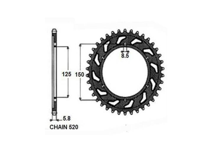 - utwardzane indukcyjnie: powierzchnie, które mają kontakt z rolką łańcucha są utwardzone, podczas gdy rdzeń zęba jest miękki i elastyczny