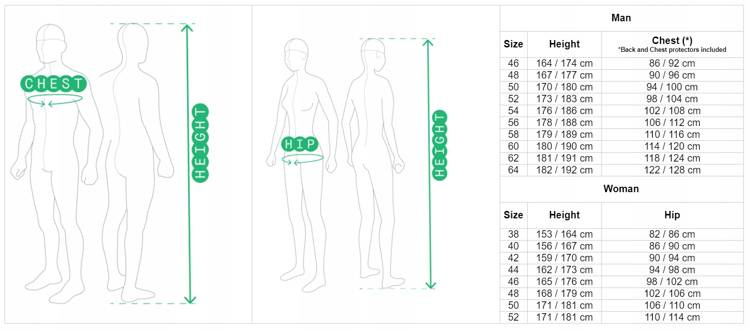 BEZPIECZEŃSTWO: miejsce na certyfikowany protektor pleców Z54, miejsce na certyfikowany protektor klatki piersiowej Warrior Z138, wyjmowane, certyfikowane protektory Force Tech łokci EN 1621-1:2012, garb aerodynamiczny, wymienne, z regulowaną wysokością slajdery kolan, zewnętrzne protektory Warrior na ramionach, wyjmowane, certyfikowane protektory Force Tech kolan EN 1621-1:2012, certyfikowane protektory EN1621-1 Warrior Lite ramion, certyfikowane protektory bioder EN 1621-1:2012, miejsce na certyfikowany protektor pleców lev. 2 Z172, miejsce na wymienne slajdery łokci Z175, miejsce na certyfikowany protektor pleców lev. 2 Z147, miejsce na certyfikowany protektor pleców Z53