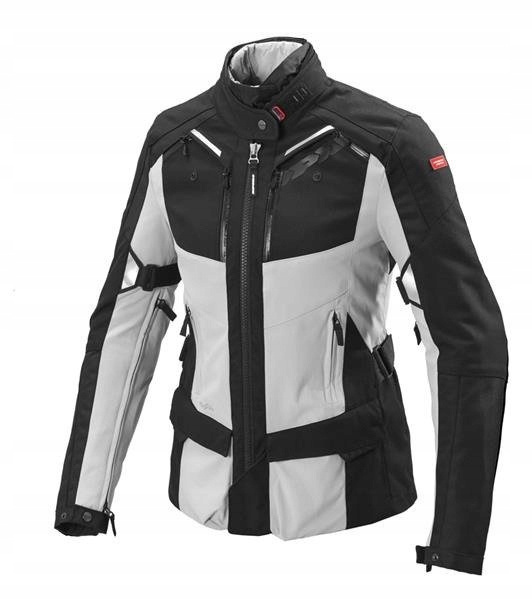 ERGONOMIA: system regulacji zapięć Ergofit, zapięcia regulacyjne na rzep na wysokości bioder i w ramionach, regulacja wysokości protektorów, idealne dopasowanie do kobiecej sylwetki, system regulacji zapięcia przy szyi EST, ściągacze na dole kurtki