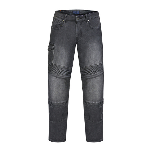 Denim to tkanina tak kultowa, że nikomu nie trzeba jej przedstawiać. Noszona przez ludzi w każdym wieku, na całym świecie. Nic więc dziwnego, że posłużyła do stworzenia spodni motocyklowych – daje w końcu pewność, że będą wygodne i bezpieczne. Tak jak materiał, z którego zostały wykonane. Dzięki użyciu materiału Coolmax jeansy będą przewiewne i komfortowe, natomiast Cordura, materiał o bardzo wysokiej odporności, da Ci gwarancję bezpieczeństwa na trasie.