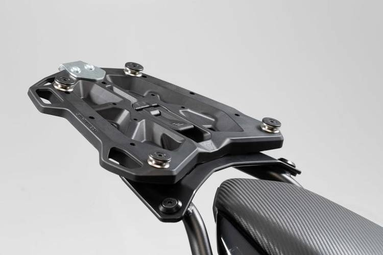Jednym prostym ruchem, płytę adaptacyjną można połączyć z dowolnym STREET-RACK’iem. Nie są do tego potrzebne żadne narzędzia! Płyta adaptera jest wsuwana na stelaż i bezpiecznie blokowana za pomocą obrotowego zatrzasku. Po zakończeniu jazdy, płytę adaptera można zdemontować w ciągu kilku sekund, a wówczas stelaż bez jakichkolwiek uchwytów pozostaje na motocyklu. Płyta adaptacyjna ma również dużą i płaską powierzchnię styku oraz sześć dużych otworów, które mogą służyć jako element mocujący. Do płyty dołączone są odpowiednie zestawy uchwytów, aby przymocować kufer centralny taki jak TRAX ADV, ION lub EVOWŁAŚCIWOŚCI