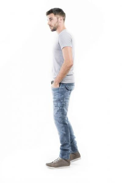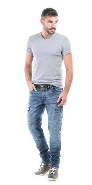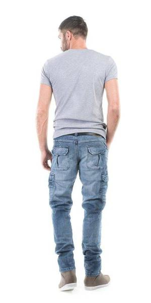 ITALIA CARGO Przylegające bojówki męskie na motocykl, warstwa zewnętrzna wysokogatunkowego jeansu 98% plus elastan (2%).