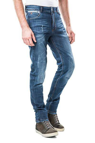 Połączenie szerszej, luzackiej góry i zwężenie w obrębie kostki – tak powstał projekt spodni motocyklowych ROMA z naszej nowej „włoskiej” kolekcji. Krój jest luźny w okolicy bioder i ud, a pod kolanami staje się ciaśniejszy. Dzięki tej j formie cięcia jeansy nie utrudniają ruchów i nie rozciągają się, gdy wsiadasz na motocykl. Z kolei dopasowane doły nogawek są odporne na wiatr podczas jazdy z dużą prędkością. Dodatkowo, ten krój sprawia, że ochraniacze SAFE-TECH®, nie zsuwają się z kolan. Opcjonalne wkładki biodrowe SAS-TEC® można zamówić oddzielnie i włożyć je do specjalnie w tym celu stworzonych ukrytych kieszeni. Miękka podszewka wykonana w 100% z DuPont TM Kevlar®* na pośladkach, biodrach i kolanach zapobiega ścieraniu w razie upadku. Podszycie jest niewidoczna na zewnątrz – dlatego dżinsy wyglądają jak zwykły model do noszenia na co dzień.