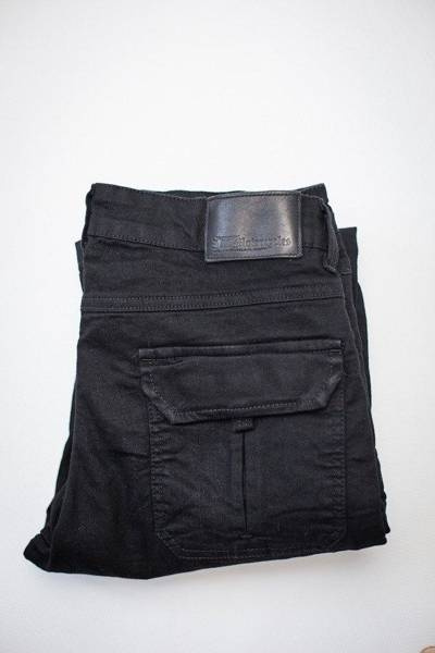 Pomimo wąskich nogawek spodnie mają wszystkie istotne strefy (kolana, biodra, zewnętrzna strona ud i tyłek) chronione 100% Kevlarem firmy Dupont oraz ochraniaczami kolanowymi.