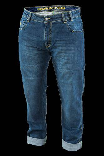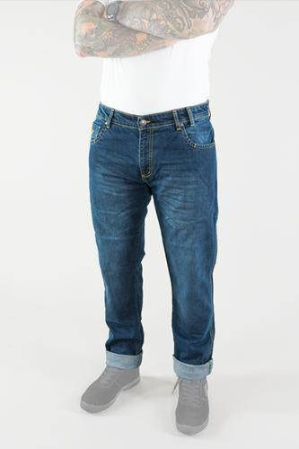 Wykonane są z wysokiej jakości wytrzymałego jeansu z dodatkiem elastanu, aby zapewnić najwyższy możliwy komfort noszenia. Ochronę przed uderzeniem zapewniają regulowane i odpinane ochraniacze kolan SAFE-TECH®, a motocyklistom, którzy cenią sobie największy dostępny poziom ochrony, polecamy opcjonalne ochraniacze bioder. Wzmocnienia DuPont™ Kevlar®* stosowany na biodrach, pośladkach, kolanach i udach zapewnia odporność na ścieranie materiału w razie upadku.