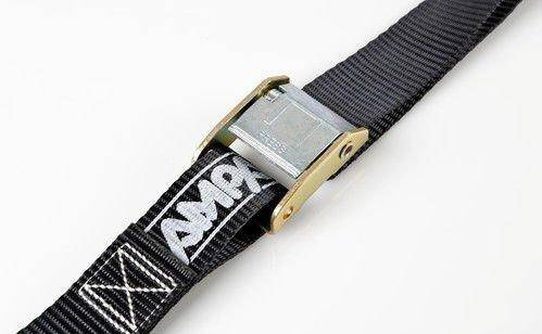 Motocyklowy pas w komplecie ze sprzączkami dla szybkiego dostosowania napięcia.