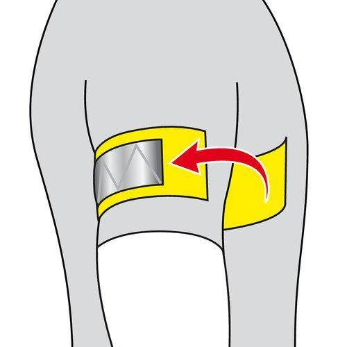 Mocno odblaskowa, w pełni regulowana za pomocą rzepów owijających całe ramię. Niesamowita widoczność 360 °.