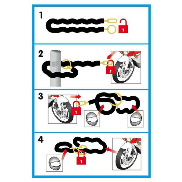 Przekrój kwadratowy 8 mm. Nylonowa osłona odporna na zarysowania. Zabezpieczenie chroniące przed przewierceniem i dostawaniem się brudu. Zamek w pętli. W zestawie 3 klucze. Wymiar: Ø 8 mm
