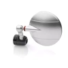 The Spy-R mirror is made from billet aluminum using 3D precision machining. Its unmistakable design and convex anti-dazzle mirror help widen the field of view. This product sets a new standard in mirror design while elevating the aesthetics. What's more, its adjustment system has been designed to maximize versatility. Spy-R is available in three sizes and two colors: 57 mm and 80 mm diameter for the more compact versions and 94.5 mm diameter for the CE-homologated version.