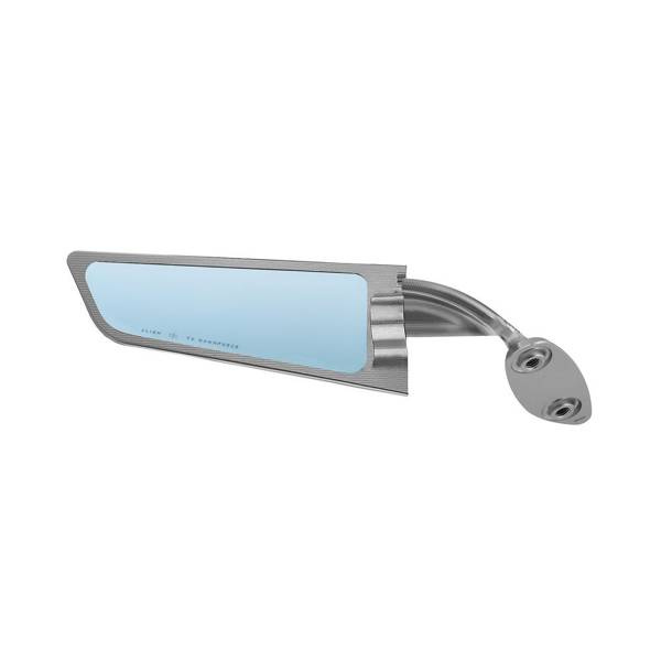 Out of the interface between racing experience and aeronautical inspiration comes a new mirror: Stealth, an accessory specifically designed for supersport bikes. It consists of a fixed part, which allows the fitting directly to the fairing, and a movable part, which acts as a mirror glass holder. Thanks to a rotating system, by a simple movement, the two parts get alligned: in closed position the mirror becomes an aerodynamic foil. While the mirror glass holder is always the same, the fixed component is designed ad hoc for each supersport bikes for which Stealth was developed, looking for the best solution to match the relative aerodynamic results. Made of billet aluminum, it has a convex glass surface to provide a wider viewing angle and is available in three different anodized colors.