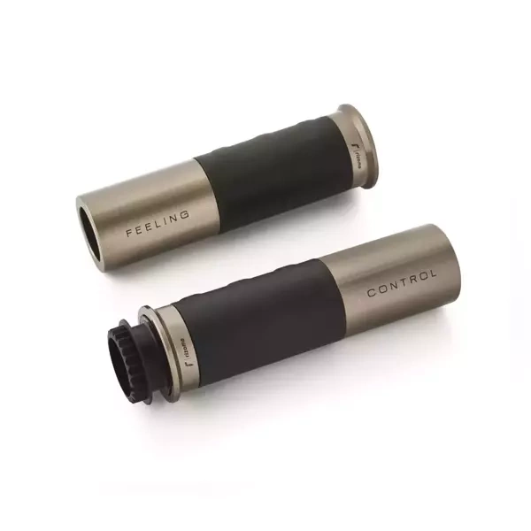 The Icon grip (Ø 22 mm), made entirely from billet aluminum, is characterized by a CNC machining designed to be touch-perceived. Its surface lathe machining enhance the control and grip feeling, thanks to the non-slip ergonomic rubber too. A further detail is its graphics, obtained by laser engraving. Enhanced with a coloured anodized finish, they offer outstanding visual impact while providing better protection and longer-lasting reliability.