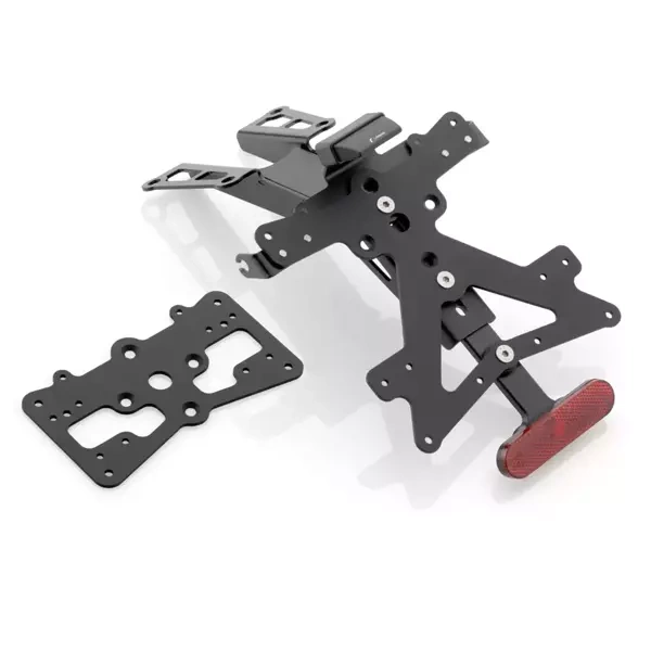 Made from aluminum, each Fox license plate kit is specifically designed for a corresponding motorcycle model. This means it matches the motorcycle styling perfectly and is quick and easy to install. Each kit actually includes everything required to fit it without requiring any modifications to OEM parts. Great functionality plus maximum compactness, but always in complete compliance with legal requirements. Fox kits include an SMD LED license plate light, reflector and Rizoma turn signal supports. They are adjustable and supplied with a safety lock to ensure the correct tilt.