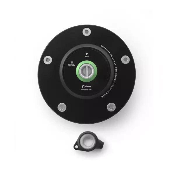 The Rizoma fuel tank cap in made entirely from billet aluminum and combines design, technology, high quality materials and safety. The Key Lock System reduces the risk of tampering while maintaining ease of installation and use. The two-tone finish is obtained through anodization, which keeps it looking good for longer.