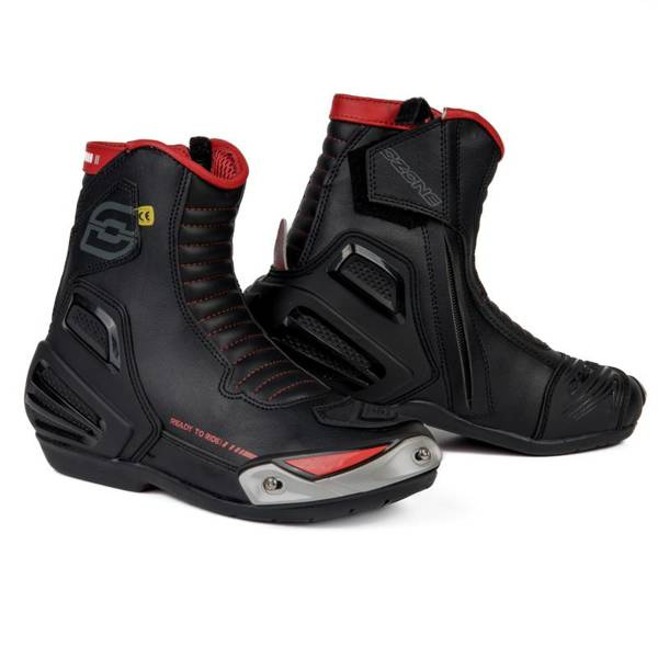 Sportowo-turystyczne buty motocyklowe z twardymi osłonami pięt i kostek, usztywnionym czubkiem, wymiennymi sliderami i wzmocnieniem pod dźwignię biegów. Zapinane na zamek i rzep. Antybakteryjna wkładka zapewnia świeżość, a elastyczne panele podnoszą komfo