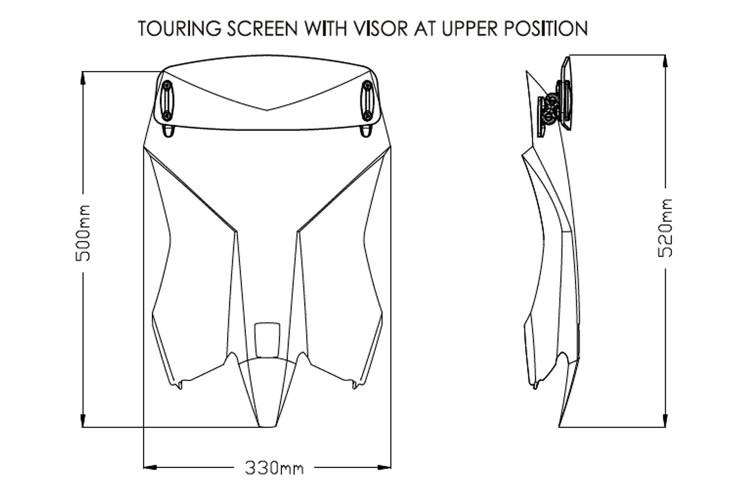 Turystyczna szyba PUIG z regulowanym deflektorem. Przedłużona w górnej części, zapewnia doskonałą ochronę przed wiatrem nawet przy długich podróżach. Dodatkowo posiada zamontowany regulowany w 3 pozycjach (plus 3 kąty nachylenia w każdej pozycji) deflektor, który jeszcze dodatkowo poprawia aerodynamikę i zmniejsza turbulencje. Otwory pod deflektor są już fabrycznie nawiercone. Szyba posiada wysoką jakość optyczną. Mocowana jest w miejsce fabrycznej, za pomocą fabrycznych śrub. Posiada niemiecki atest TUV. Zastosowanie:KTM 250 ADVENTURE 2021, KTM 390 ADVENTURE 2020-2022