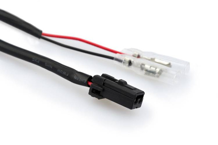 Zestaw umożliwia podłączenie akcesoryjnego oświetlenia tablicy LED do fabrycznego złącza w motocyklu, bez konieczności ingerencji w instalację elektryczną.