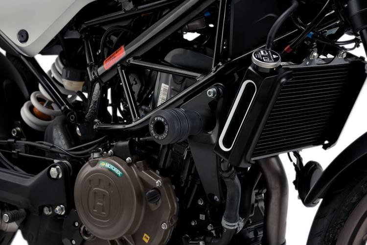 Crash pady PUIG poprawiają ochronę motocykla w przypadku nieprzewidzianych wydarzeń i upadku. Wykonane z materiału bardzo odpornego na ścieranie, nie psują wyglądu motocykla. Cena dotyczy dwóch crash padów i zestawu mocującego do danego motocykla. Element gumowy zasłania śrubę, jednocześnie chroni nogę gdy przypadkiem zahaczysz o crash pad. Można także dokupić kolorowe gumki, aby zapewnić crash padom indywidualny charakter. Pamiętaj! To nie crash pady, a bezpieczna jazda zgodnie z przepisami może uchronić Cię przed wywrotką. Crashe mogą jedynie zmniejszyć straty przy takim zdarzeniu. Jedź ostrożnie! Zastosowanie: Husqvarna SVARTPILEN 125 2021-2022, Husqvarna SVARTPILEN 401 2017-2022, Husqvarna VITPILEN 401 2017-2022