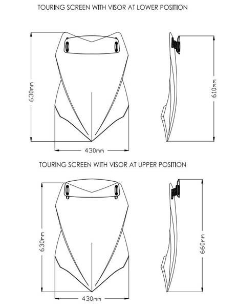 Przedłużona w górnej części, zapewnia doskonałą ochronę przed wiatrem nawet przy długich podróżach. Dodatkowo posiada zamontowany regulowany w 3 pozycjach (plus 3 kąty nachylenia w każdej pozycji) deflektor, który jeszcze dodatkowo poprawia aerodynamikę i zmniejsza turbulencje. Otwory pod deflektor są już fabrycznie nawiercone.