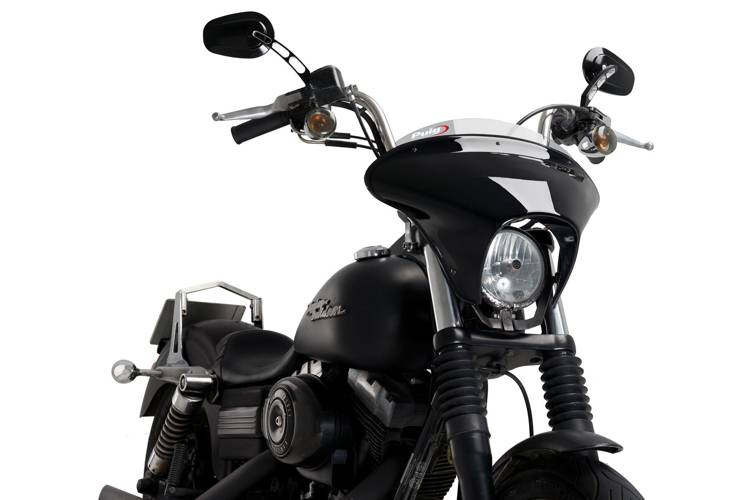 Dwuczęściowa półowiewka Batwing SML świetnie chroni przed wiatrem. To mniejszy brat dużego Batwinga. Szyba występuje w dwóch długościach (krótka lub długa) oraz kolorach (dymiona lub ciemna) do wyboru. Idealnie pasuje do lampy motocykla. W komplecie zestaw montażowy.