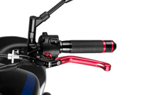 Sportowa dźwignia sprzęgła PUIG - z sześciostopniową regulacją i zawiasem 90 stopni chroniącym klamkę przed uszkodzeniem.