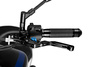 Sportowa dźwignia sprzęgła PUIG. Wersja z zawiasem 90 stopni, sześciostopniową regulacją i kolorowym przedłużeniem.