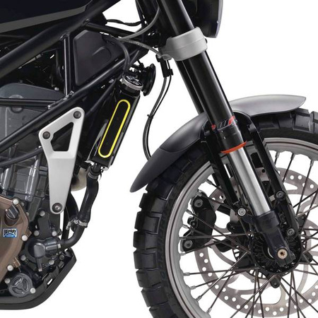 Przedłużenie przedniego błotnika zapewnia ochronę dolnej części motocykla - kolektorów układu wydechowego, owiewek i innych elementów - przed zabrudzeniami z przedniej opony. Niezastąpione na polskich drogach. Do używania konieczny jest montaż na stałe do błotnika, za pomocą dołączonych czterech kołków do plastiku (przedłużenie i błotnik należy przewiercić w 4 punktach). Produkt podwykonawcy (Pyramid) firmowany także przez PUIG. Zastosowanie:Husqvarna VITPILEN 701 2018-2021