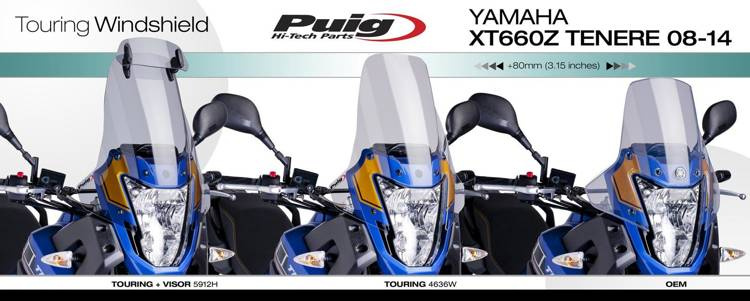 Dodatkowe przedłużenie w turystycznej szybie PUIG zapewnia doskonałą ochronę przed wiatrem nawet przy długich podróżach. Szyba zaprojektowana w wirtualnym tunelu aerodynamicznym. Wysoka jakość optyczna (akryl). Mocowana w miejsce fabrycznej, za pomocą fabrycznych śrub. Posiada niemiecki atest TUV. Zastosowanie:Yamaha XT660Z Tenere 2008-2016