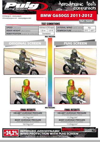 Dodatkowe przedłużenie w turystycznej szybie PUIG zapewnia doskonałą ochronę przed wiatrem nawet przy długich podróżach. Szyba zaprojektowana w wirtualnym tunelu aerodynamicznym. Wysoka jakość optyczna (akryl). Mocowana w miejsce fabrycznej, za pomocą fabrycznych śrub. Posiada niemiecki atest TUV.