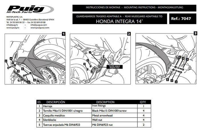 Błotnik PUIG zapewnia ulepszoną ochronę przed zanieczyszczeniami z okolic opony. Wykonany z solidnego polikarbonu, gotowy do użycia - czarny matowy lub w imitacji karbonu. Zintegrowana osłona łańcucha. W zestawie komplet mocowań do danego modelu motocykla. Zastosowanie:Honda INTEGRA 750 2014-2020, Honda INTEGRA 750S 2014-2016