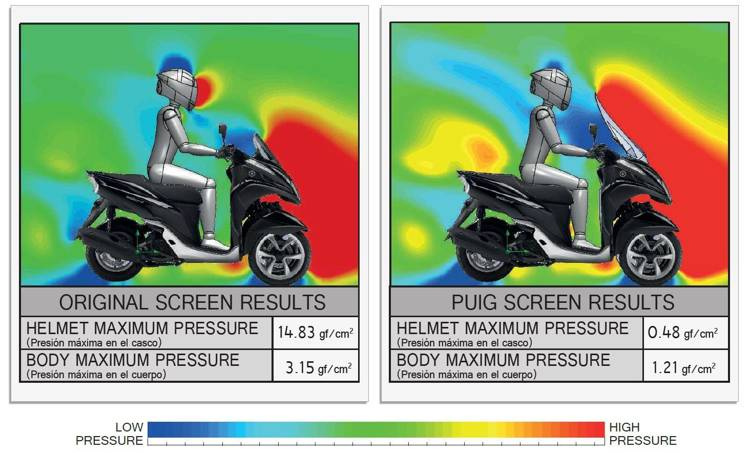 Szyby V-Tech zostały zaprojektowane w wirtualnym tunelu aerodynamicznym. Specjalnie przetłoczenie na środku (w tylu racing) powoduje ukierunkowanie strugi powietrza na boki, zmniejszając turbulencje w okolicach kasku. Szyby V-Tech są przeznaczone do najnowszych skuterów. Cechuje je wysoka jakość wykonania i odporność na zarysowania.
