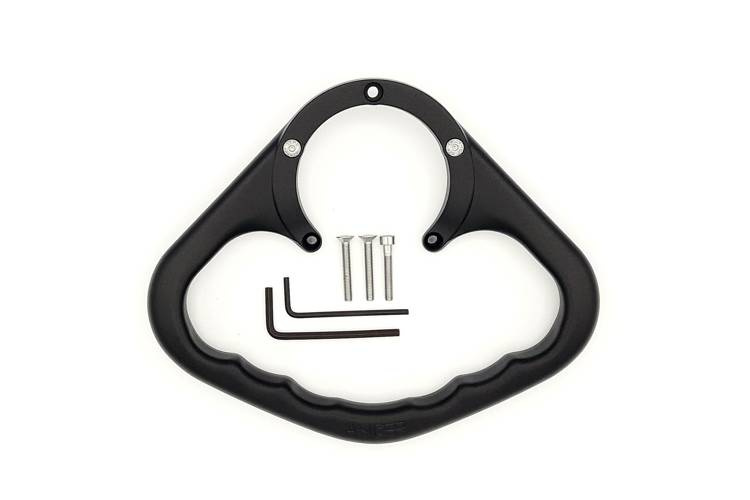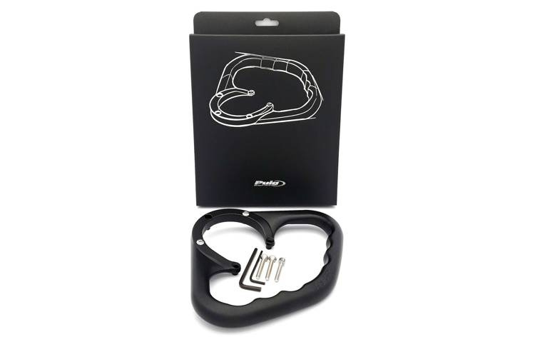 Wykonany z lekkiego aluminium uchwyt dla pasażera. Mocowany w miejsce śrub korka wlewu paliwa. W zestawie komplet dłuższych śrub.