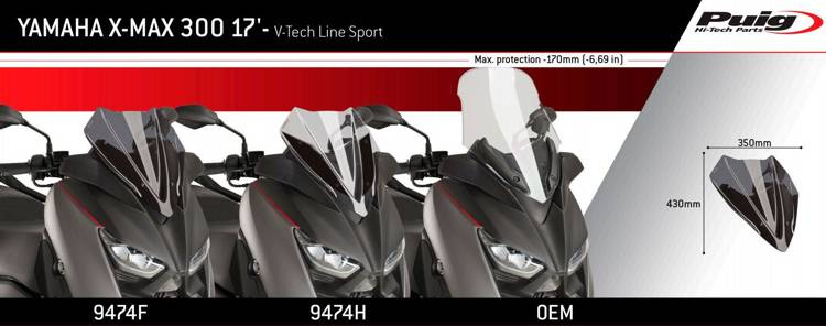 Szyby V-Tech zostały zaprojektowane w wirtualnym tunelu aerodynamicznym. Specjalnie przetłoczenie na środku (w tylu racing) powoduje ukierunkowanie strugi powietrza na boki, zmniejszając turbulencje w okolicach kasku. Szyby V-Tech są przeznaczone do najnowszych skuterów. Cechuje je wysoka jakość wykonania i odporność na zarysowania. Zastosowanie:Yamaha X-MAX 125 2018-2022, Yamaha X-MAX 300 2017-2022, Yamaha X-MAX 400 2018-2021