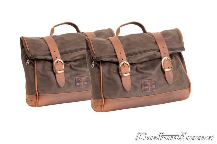 Sakwy boczne Customaccess zaprojektowane do przewożenia bagażu w motocyklach typu custom i chopper. Wykonane elegancką linią z wodoodpornym wykończeniem skóry i tkaniny w stylu barbour, z wewnętrzną wyściółką i podwójnym zapięciem na klamrę. Sakwy mają pojemność 8 litrów każda, mierzą 35 cm długości, 26 cm wysokości i 13,5 cm szerokości. Cena za komplet. Istnieje możliwość zakupu pojedynczej sakwy.