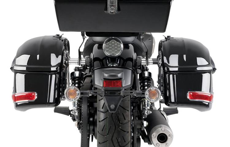 Kufry boczne Customaccess zaprojektowany specjalnie do przewożenia bagażu w motocyklach typu custom i chopper. Kufer lakierowany czarny, dodatki plastikowe imitujące chromowane. W komplecie światło stop w technologii LED (wiązka trzyprzewodowa - światło bez homologacji) - zdecydowanie poprawiające widoczność motocykla i bezpieczeństwo. Mocowanie na dwie śruby - poprzez przewiercenie tylnej ścianki kufra - kufry mogą być mocowane na bagażnikach Customaccess typu SL. . . i SN. . . . oraz innych uchwytach uniwersalnych. Pojemność: 2x 35 litrów. Wymiary: 686 mm x 355 mm x 280 mm. Do kufrów NIE mieści się kask (są za wąskie).