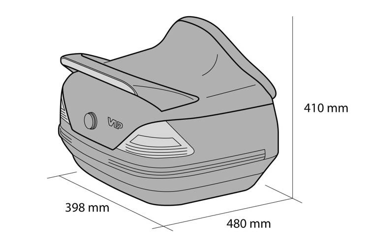 Kufer centralny Customaccess zaprojektowany specjalnie do przewożenia bagażu w motocyklach typu custom i chopper. Wymiary: 480 mm x 410 mm x 390 mm. W tym kufrze NIE mieści się kask integralny/szczękowy - kufer ma mocne wycięcie wewnętrzne na oparcie. Kufer może być mocowany na bagażnikach Customaccess typu SB. . . i SM. . . oraz płaskich, uniwersalnych bagażnikach w motocyklach custom i chopper. W komplecie płyta uniwersalna. Kufer posiada wyprowadzenie wiązki świateł - możliwość podpięcia światła pozycyjnego oraz stop.