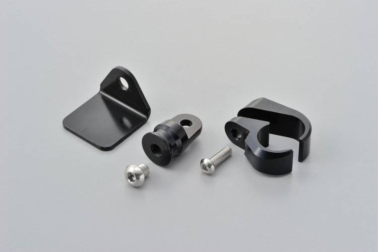 Aluminiowy wspornik z zaciskiem. Pasuje do kierownicy o średnicy zewnętrznej 22,2 mm.