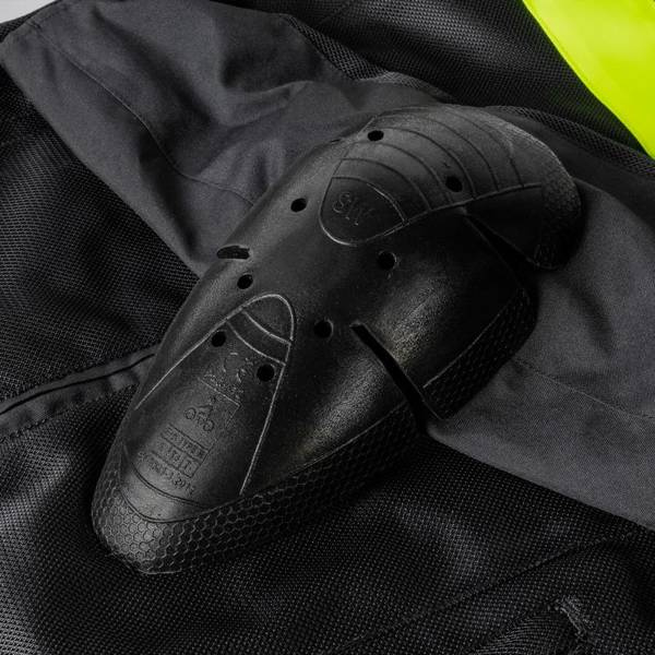 Kurtkę motocyklową DART zaprojektowano z myślą o wygodzie. Duże panele mesh z przodu, z tyłu oraz na rękawach gwarantują doskonałą cyrkulację powietrza i odprowadzanie wilgoci, dzięki czemu kurtka idealnie sprawdzi się w upalne dni. Na barkach i łokciach ma certyfikowane ochraniacze CE-Level 1. Jest regulowana na biodrach i w rękawach. Dodatkowym plusem kurtki są pojemne kieszenie. Materiał