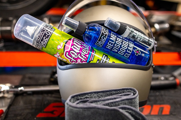Odświeżająca pianka do kasku, środek do czyszczenia wizjera i skorupy kasku, środek anti-fog oraz ściereczki z mikrofibry to niezbędnik motocyklisty pragnącego utrzymać kask we właściwym stanie przez cały sezon.
